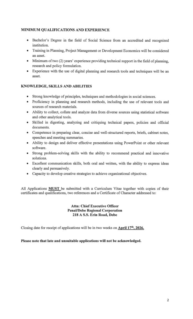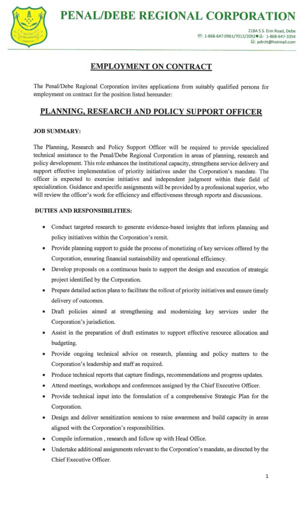 Vacancy – PLANNING, RESEARCH AND POLICY SUPPORT OFFICER